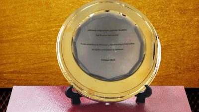 Mr. Chirstophe Puiasis of Michaud Exports France presented a memento to Mr. Maniymuthu on completion of 30 years